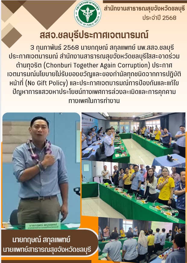 | 2024-12-26 12:58:22 | งานตรวจสอบและควบคุมภายใน | ประกาศเจตนารมณ์ต่อต้านการทุจริตและ ประกาศ No Gift Policy | 20241226-1735192702.pdf | 68 | Administrator |
